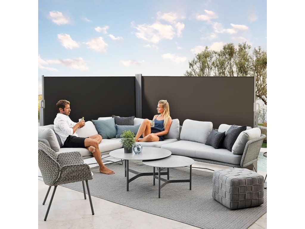 Страничната тента, която се търкаля, предпазва не само от погледите на минувачите, но и от слънчевите лъчи и вятъра . Така можете да прекарвате време навън дори в горещите летни дни или леко ветровитите есенни следобеди.