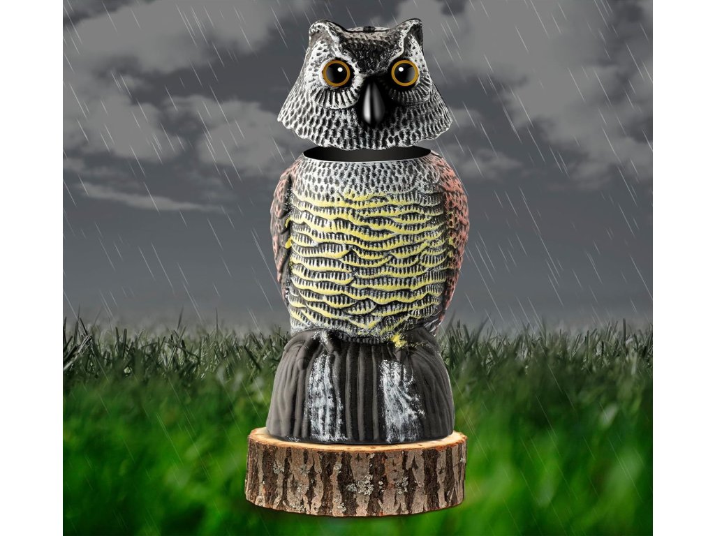 Съсипана реколта, повредени растения или мръсна тераса могат да бъдат истинска болка. Ако искате ефективно да предотвратите подобни ситуации, моделът на бухал с въртяща се глава, който работи като плашило за птици, е идеалното решение за вас.
