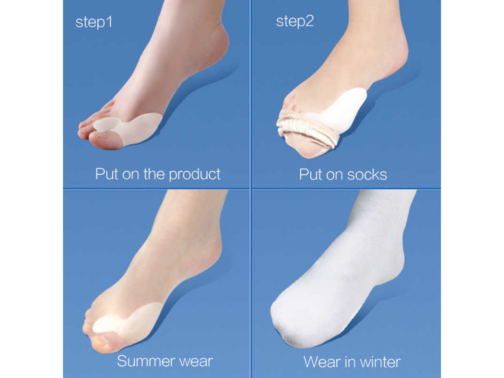 Коректор с протектор за палци, изработен от силикон и напълнен с гел. Благодарение на това коректорът е мек и удобен, но същевременно ефектен и ефикасен. Коректорът не притиска между пръстите, стои добре на мястото си и е удобен за носене.