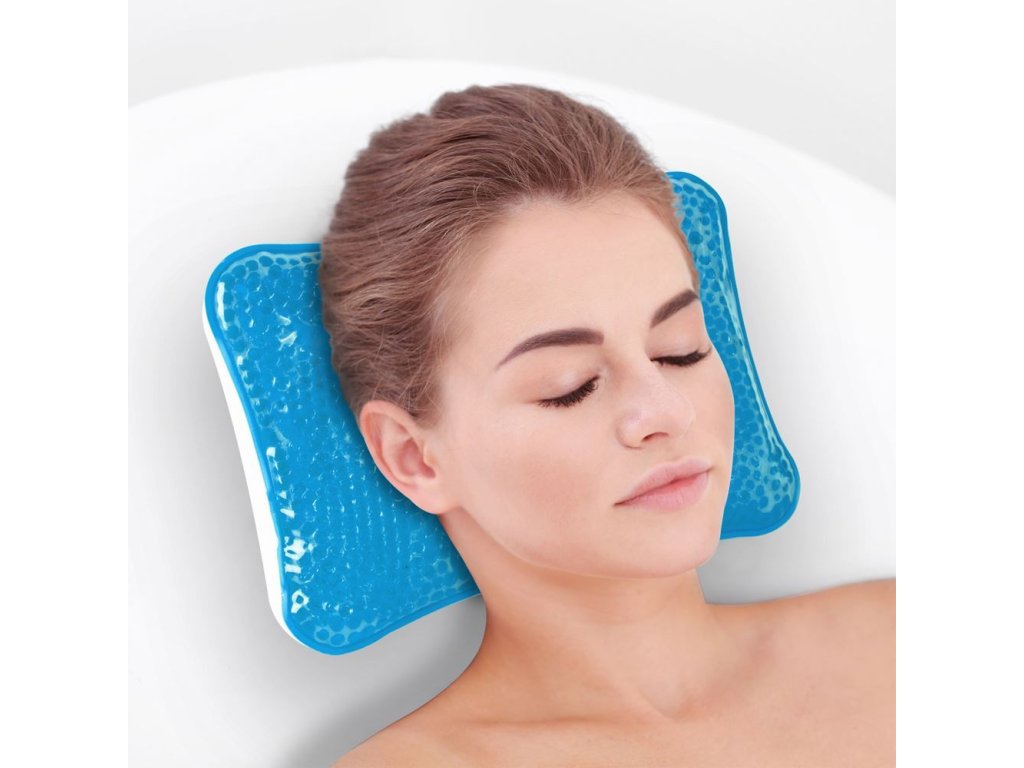 Уникалната релаксираща възглавница за баня е с пълнеж от гел топчета. Осигуряват удобна опора за главата, врата или гърба. Така няма риск да ви боли врата от банята и ще се насладите на повече релаксация.