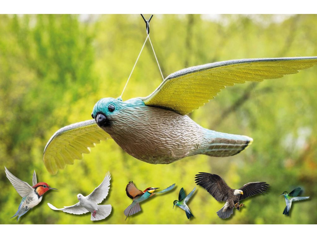 Трябва ли да защитите вашите култури в градината или в овощната градина от набезите на различни птици? Или досадните гълъби правят живота ви в градината или на терасата некомфортен? Манекенът на ветрушка в реален размер ще ви помогне да прогоните малки птици като гълъби, синигери или дроздове от вашата градина и по този начин да защитите вашите култури.
