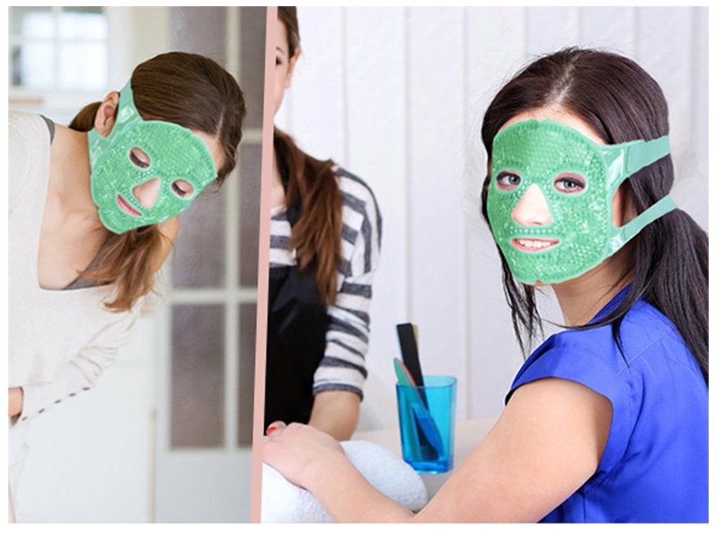 Охлаждащата гел маска за лице е не само отлично средство за релаксация, но е и много практична. Има регулируеми презрамки с велкро, които задържат маската на лицето. Засега можете свободно да се посветите на други дейности.