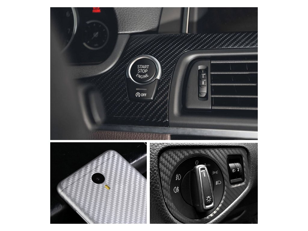 Въглеродното фолио може да бъде не само практично, но може да осигури страхотно дизайнерско шоу. Може да се нанася както върху интериора на автомобила, така и върху различни повърхности като уреди, мебели, мобилни телефони и друга електроника. Можете да избирате между няколко цветови варианта.