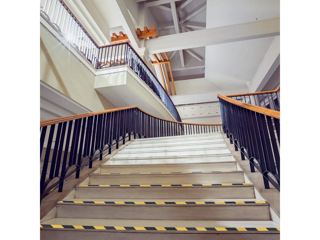 Повечето злополуки в домакинствата се случват по стълбите. Паданията не само боли, но и можете да се нараните сериозно. Тази противоплъзгаща лента ще ви помогне да се предпазите от падане. Залепете го на ръба на стълбите. При ходене предпазва от подхлъзване и последващо падане.