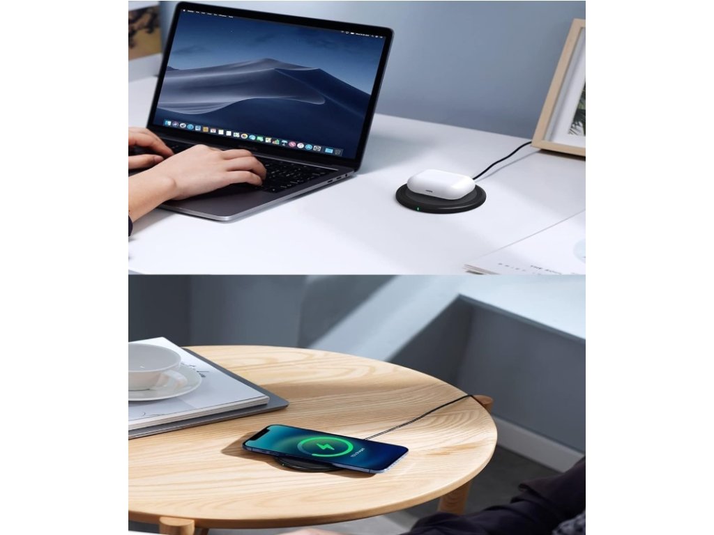 С елегантен и компактен дизайн, това оригинално безжично зарядно устройство се вписва във всяка среда. Перфектните размери и форма на кръг с диаметър 100 мм и височина 6,5 мм гарантират, че той никога няма да наруши хармонията на вашето работно или релаксиращо пространство.