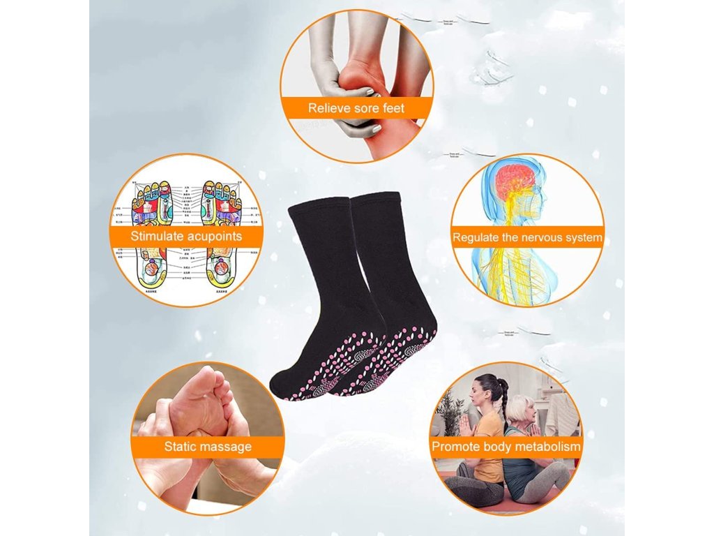 В допълнение към наличието на уникален турмалин, стимулирането на акупресурните точки е важно за функцията на тези специални затоплящи чорапи. По този начин те ще помогнат надеждно при уморени, възпалени и подути крака.