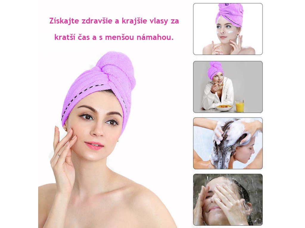 Тази вълшебна кърпа - тюрбан за глава е изработена от специален микрофибър, който е изключително абсорбиращ. Попиваемостта му е до 6 пъти по-голяма от тази на обикновена кърпа. Благодарение на това изсушава косата изключително бързо. По-малкото сушене със сешоар е по-добро за здравето и блясъка на косата ви. Получете по-здрава и красива коса за по-малко време и с по-малко усилия.