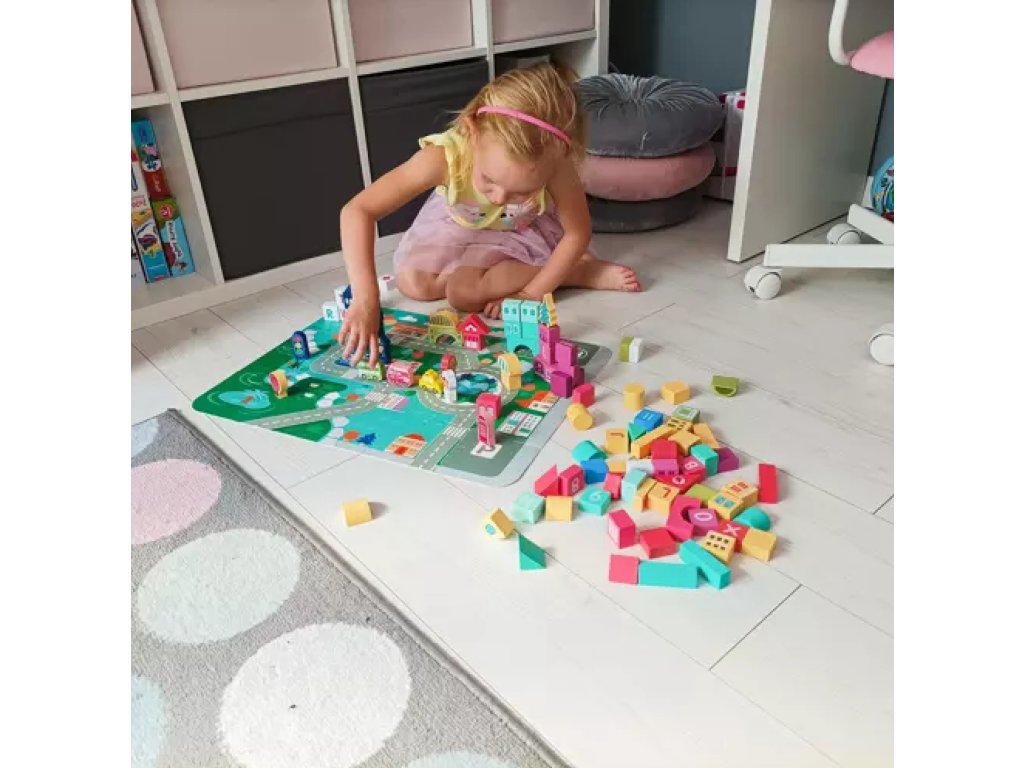 Тази многофункционална играчка включва и 20 дървени части от пъзел, които могат да се използват като градска постелка. Вашите деца могат лесно да създадат цял град точно според въображението си или дори като наблюдават заобикалящата ги среда. Такава игра помага на децата да развият логическо мислене, способността да вземат решения и да създават.