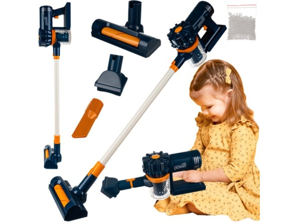 Децата харесват най-много реалистични играчки. Тази детска прахосмукачка наистина наподобява оригиналната вертикална прахосмукачка за възрастни. Дори нашата детска вертикална прахосмукачка има до 3 глави, което прави прахосмукачката още по-интересна и забавна за детето. В комплекта има и малки топчета, които имитират бъркотия и мръсотия, която трябва да се почиства с прахосмукачка.