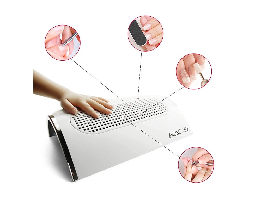 Уникалният абсорбатор на прах за маникюр е компактно устройство, което ви позволява да поддържате работното място чисто, когато използвате пила за нокти или шлифовъчна машина. След завършване на нокътя можете лесно да нанесете друга козметика и лакове.