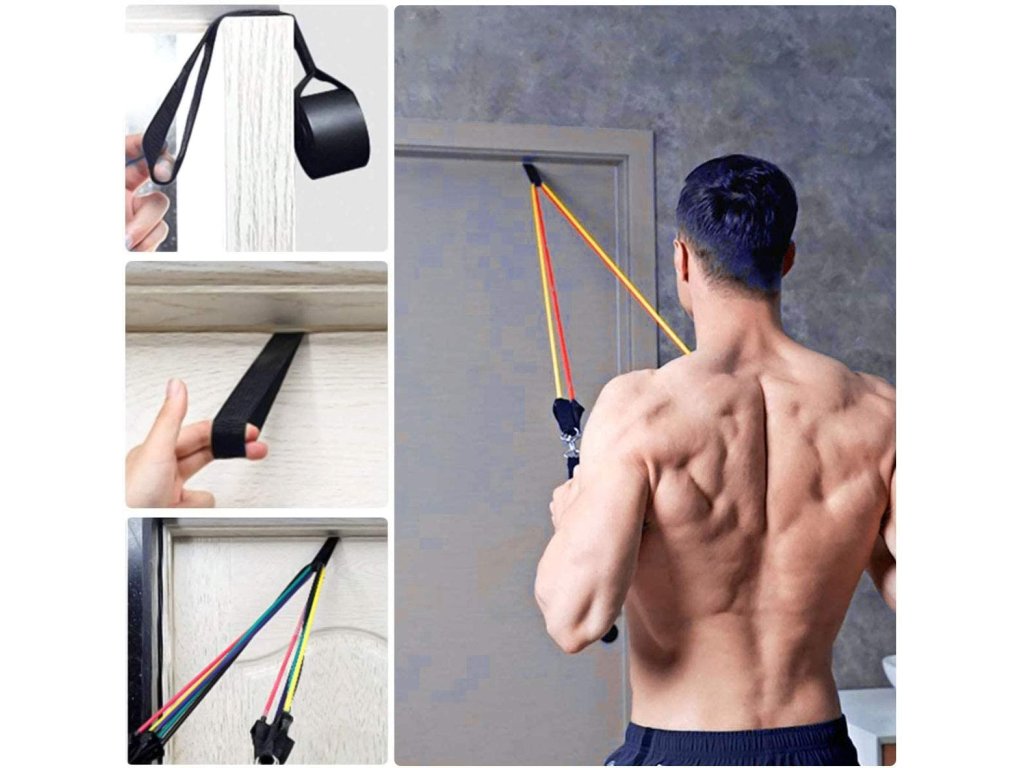 Тази специална укрепваща гума игриво замества няколко укрепващи гуми. Класическите укрепващи гуми ще ви дадат само 1 съпротивление. Благодарение на регулируемото съпротивление, тази специална укрепваща гума закачливо замества няколко укрепващи гуми. По този начин не е необходимо да купувате всеки един поотделно. Освен това, благодарение на него ще тренирате цялото тяло. Той надеждно ще замени няколко скъпи устройства. С този уред спестявате много пари и време.