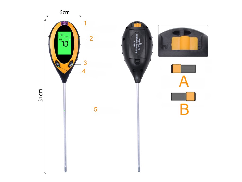 Измервателят на свойствата на почвата или тестерът за почва работи с помощта на сонда, която измерва всички необходими стойности, когато се постави в почвата. След това те ще се появят на дисплея.