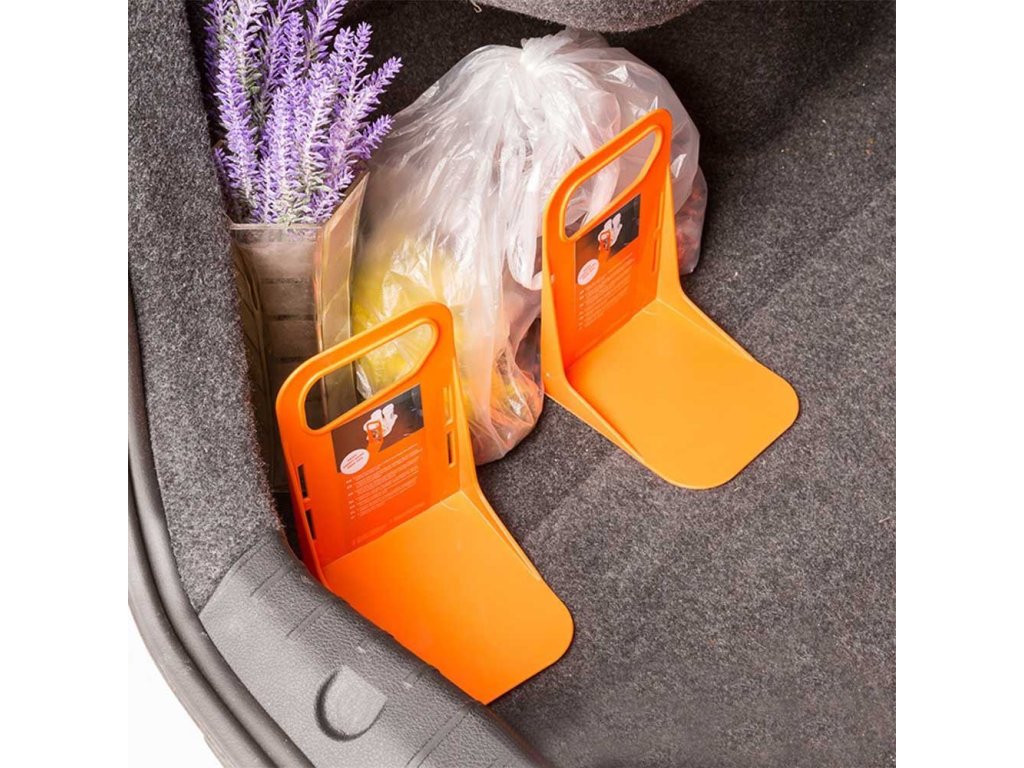 Благодарение на тези запушалки ще се отървете завинаги от нещата, които лежат в багажника на колата ви. Достатъчно е да поставите стопера под транспортирания предмет и леко да го натиснете надолу. Предметът сам притиска велкро стопера към багажника на автомобила, което му осигурява необходимата стабилност. Така то ще стои перфектно на мястото си.