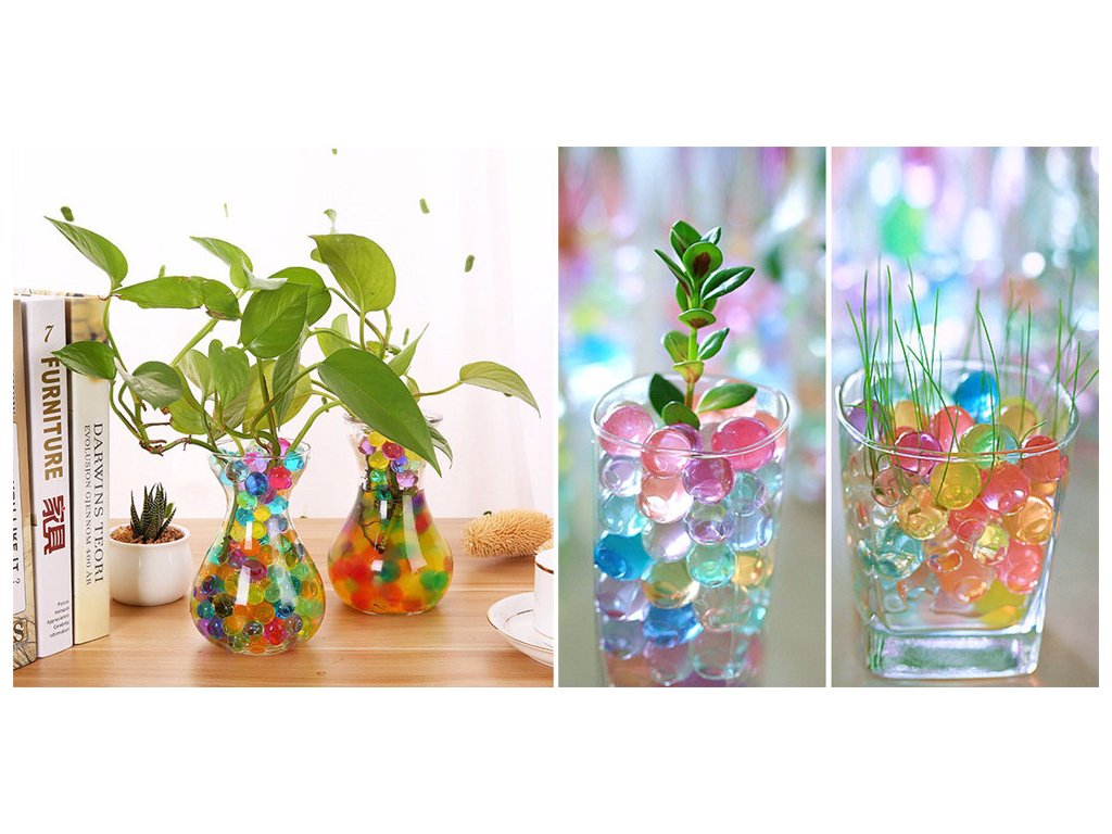 Тези невероятни водни гел топки за цветя са направени от полиакрилатна смола, което ги прави биоразградими. Продължителността им на живот след накисване във вода е 30 дни.