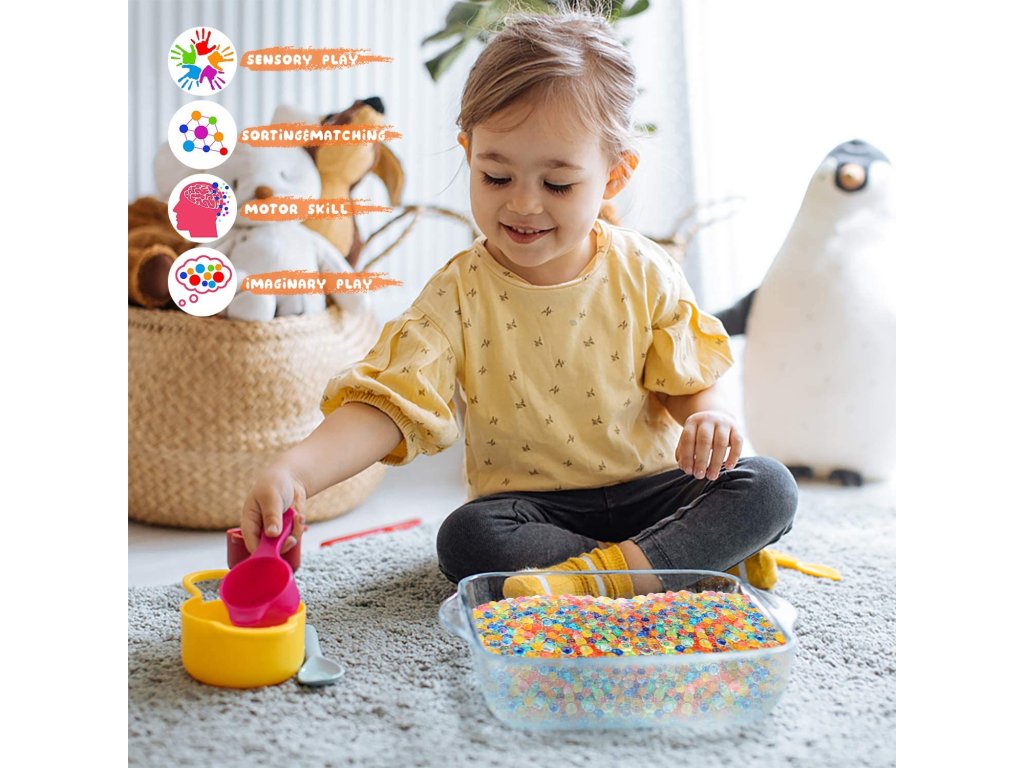 Очарователните многоцветни хидрогелни топки могат да бъдат идеална креативна играчка за вашите деца. Те ще се подобрят, като играят в областта на: