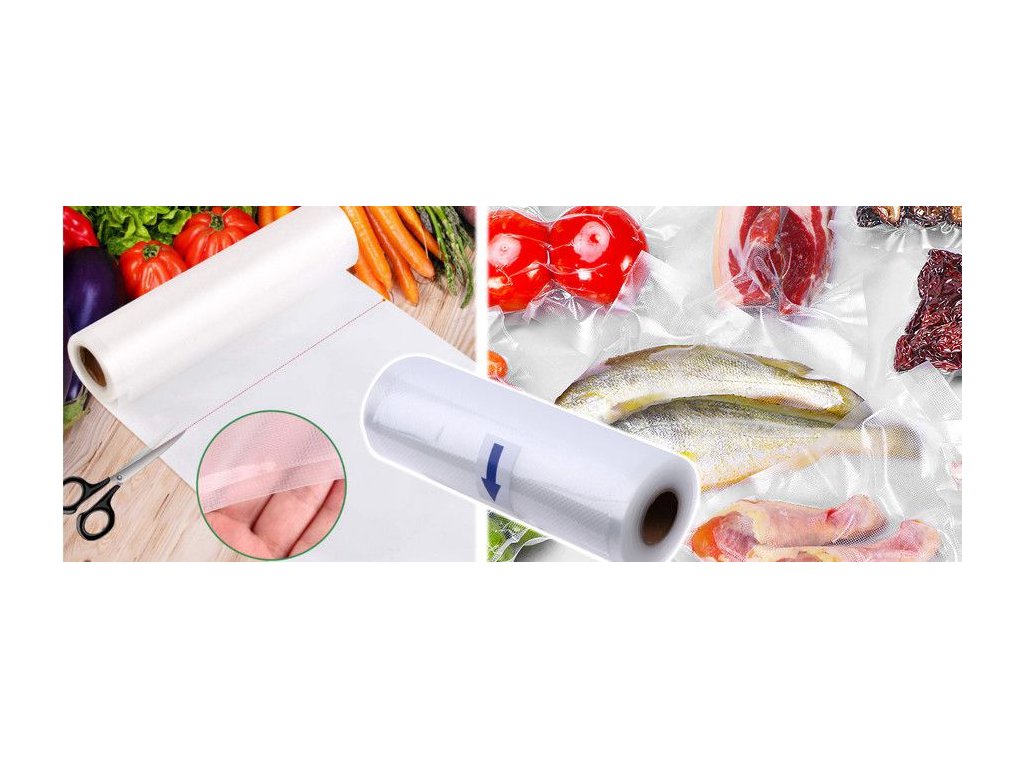 Практичното фолио за вакуумно запечатване се предлага под формата на ролка. Този тип релефно фолио позволява опаковката да се адаптира към храни с различни размери. Това ще ви спести консумация на фолио. Вие просто използвате само дължината на фолиото, която е необходима.