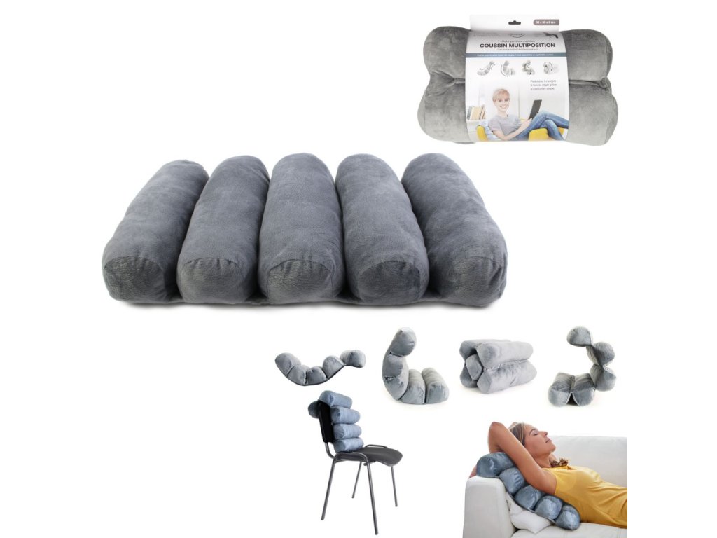 Тази уникална възглавница за релакс е направена с мисъл за вашия комфорт и релакс. Неговата многопозиционна система ви позволява да го модулирате според вашите нужди. Специалната многофункционална възглавница се адаптира перфектно към вашите предпочитания. Можете да: