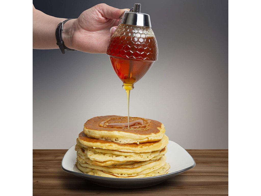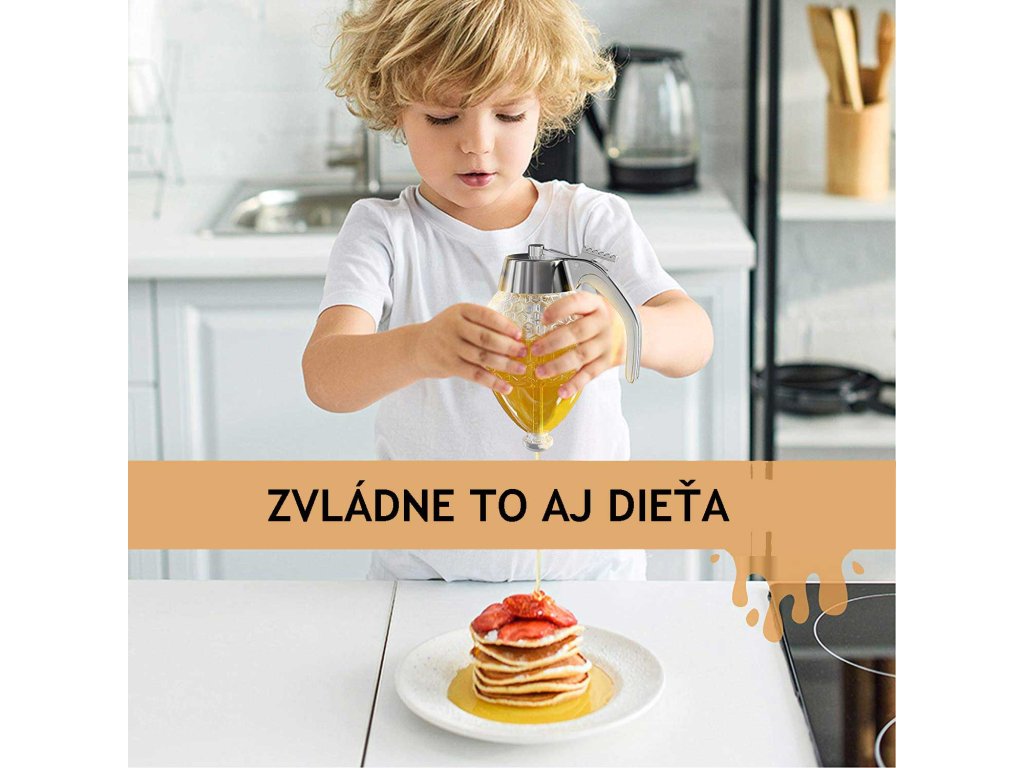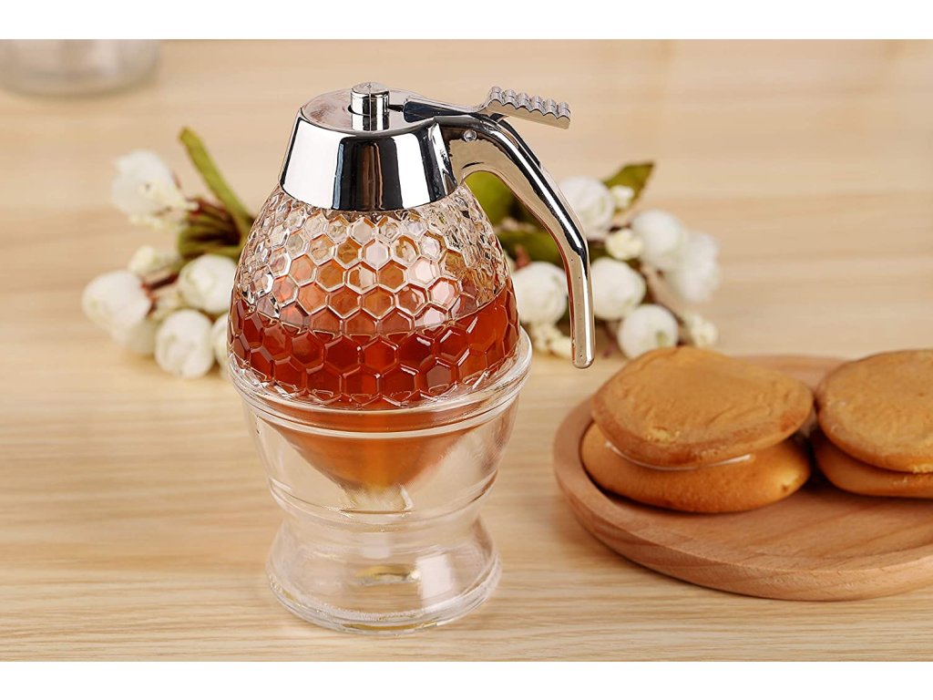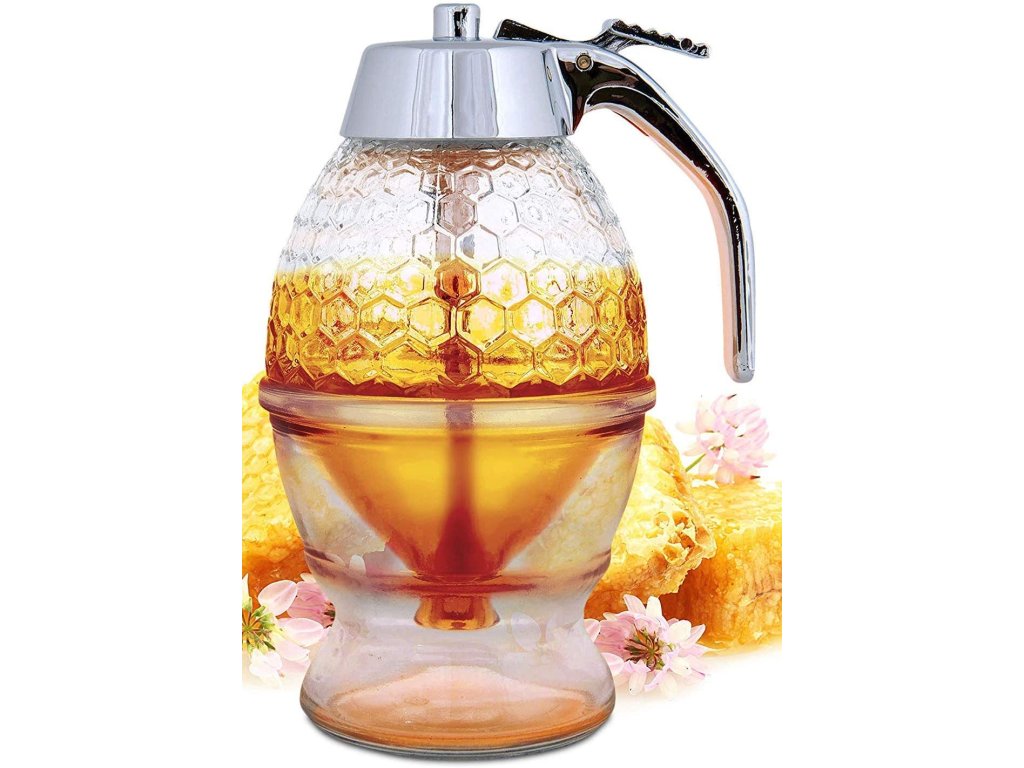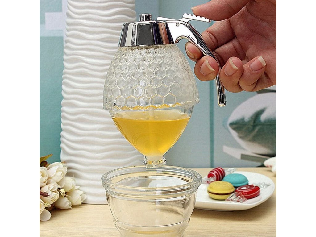 Забравете за неприятните разливи на мед, лепкавите петна и бъркотията. С този уникален дозатор можете да се поглезите с вашето лакомство веднага, удобно и без бъркотия. Можете също така да използвате дозатора за сироп, шоколад, захар и всичко друго. Просто натиснете лоста на дръжката и тя веднага ще изтече от дъното. Пускате лоста и той веднага спира без никаква бъркотия.