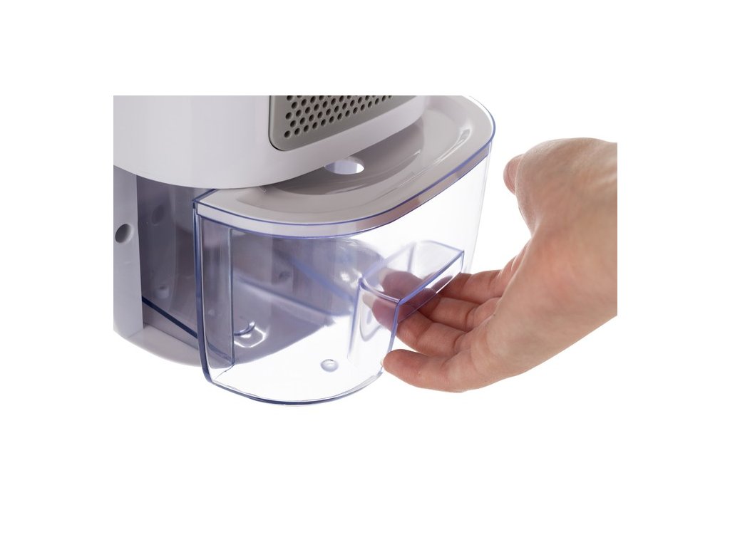 Отличният електрически влагоуловител има практичен контейнер за кондензирана вода, който е с капацитет до 800 мл. Това ще бъде достатъчно за 60 часа работа на устройството. Благодарение на това няма да се налага да изливате водата от време на време.