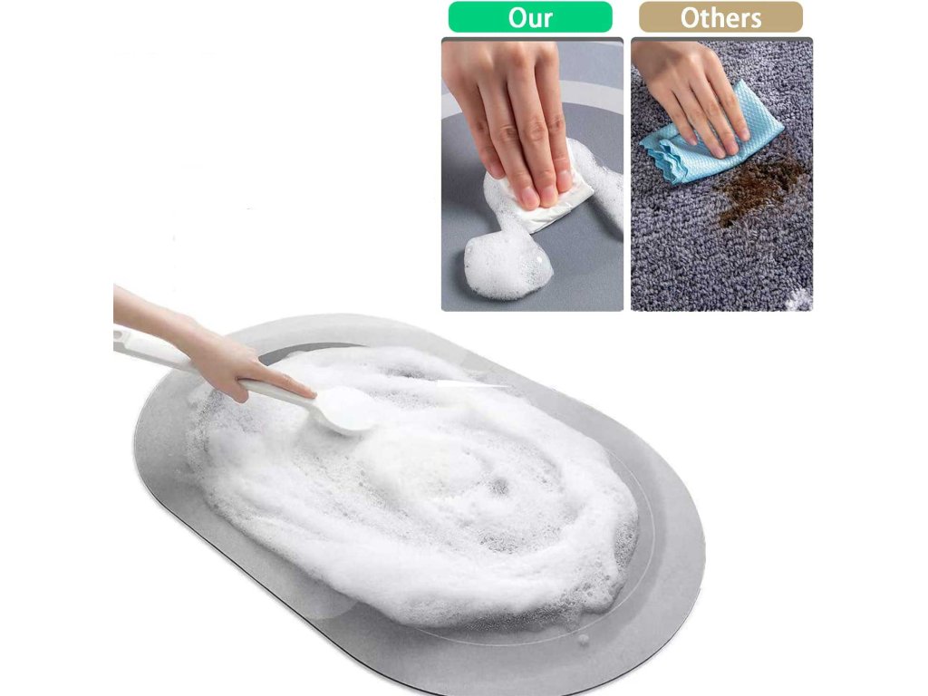 Този сензационен килим за баня е много абсорбиращ и невероятно издръжлив благодарение на висококачествените материали. Горната част е направена от уникален абсорбиращ слой пяна, който може да абсорбира водата веднага.