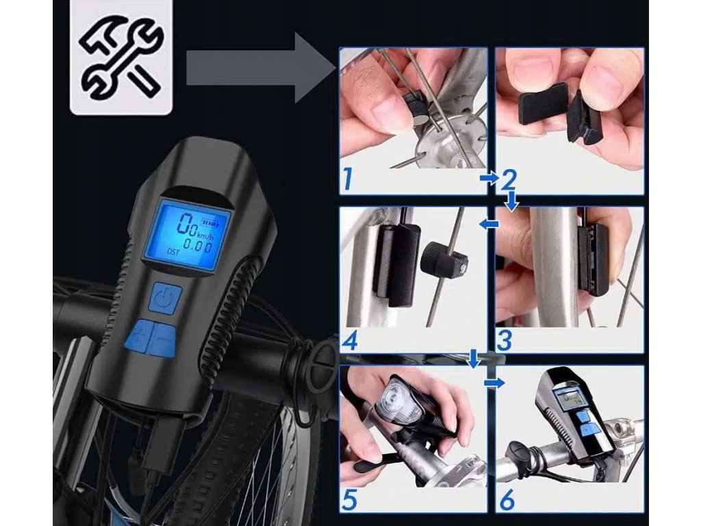 Комплектът LED светлини за велосипед е оборудван с много силен звънец, който може да се похвали с мощност до 120 dB. Благодарение на това можете да сте сигурни, че винаги ще може да ви уведоми навреме за присъствието си на пътя.