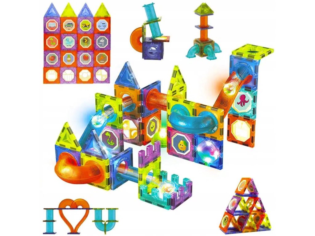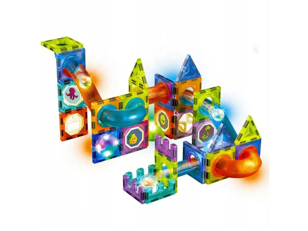 Запознайте се с магията на магнитния конструктор, с който ще се забавлявате много. Блоковете са снабдени с изключително силен магнит с повишена плътност, който осигурява стабилността и издръжливостта на изградените сачмени пътеки.