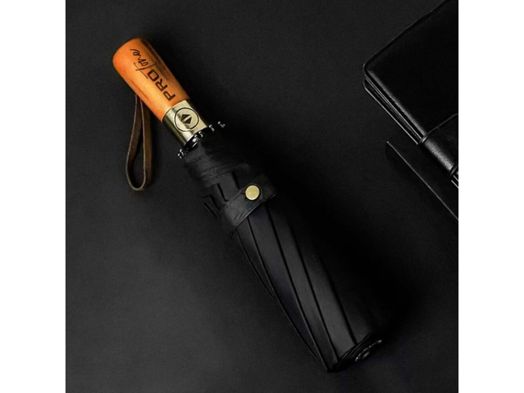 Дръжката на този автоматичен чадър не пропусна най-високото качество на изработка. Изработена е от материал, имитиращ дърво, който идеално допълва елегантния дизайн. От само себе си се разбира, че е устойчив на повреди и вода.