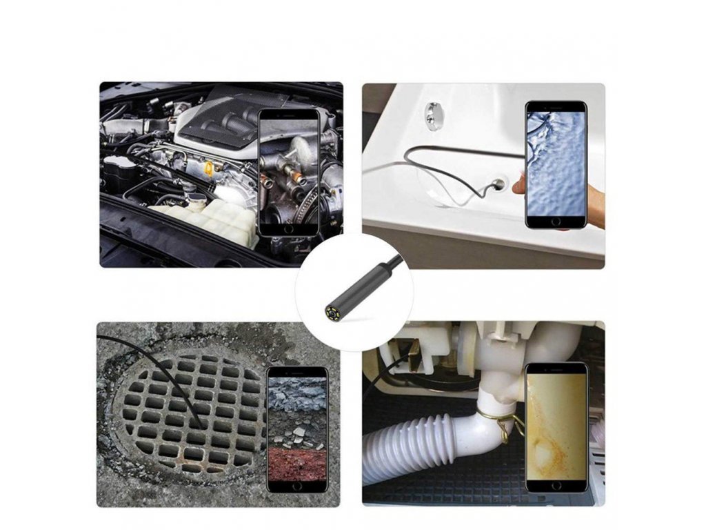 Идеален за изследване на тръбопроводи, отпадъци, различни машини, механизми и оборудване, които обикновено не могат да бъдат достигнати, за предварително определяне на степента на необходимите ремонти, в археологията, минералогията, за откриване на PCB, в автосервизи, на строителни площадки и за наблюдение на други обекти недостъпни за очите.
