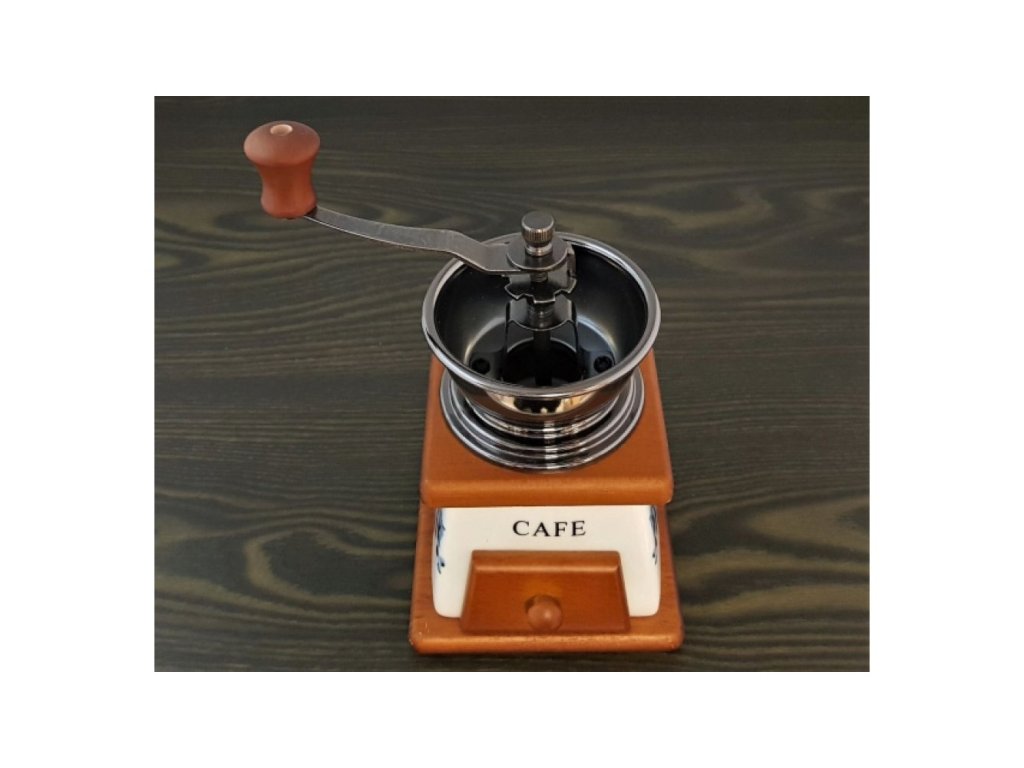Работи се лесно, кафените зърна се поставят в купата и дръжката се завърта многократно, след което смляното кафе пада в чекмеджето. Мелница изработен е от керамика и дърво с леснодостъпно чекмедже, предното чекмедже събира смляно кафе, готово за приготвяне на собствен микс от прясно кафе.
