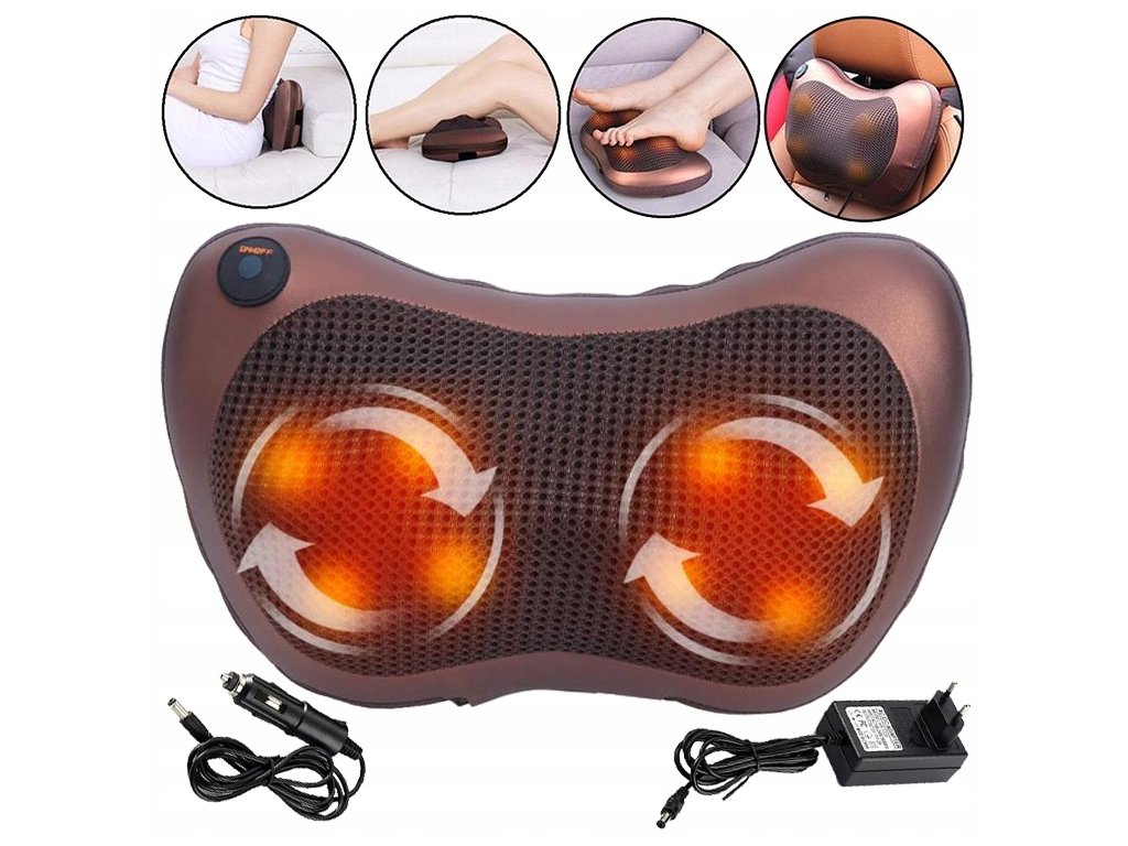 Масажиращата възглавница е подходяща за релаксиращ и лечебен масаж при болки във врата, гърба, мускулите и за по-бърза регенерация след спортни постижения. Масажираната зона релаксира, насърчава кръвообращението и регенерацията на засегнатата област. Приятният масаж също помага за облекчаване на болката. Подходящ е и за схванати мускули, тъй като кръвоснабдява. Насладете се отново на движение без болка.