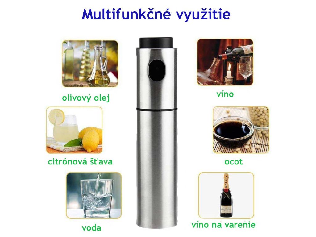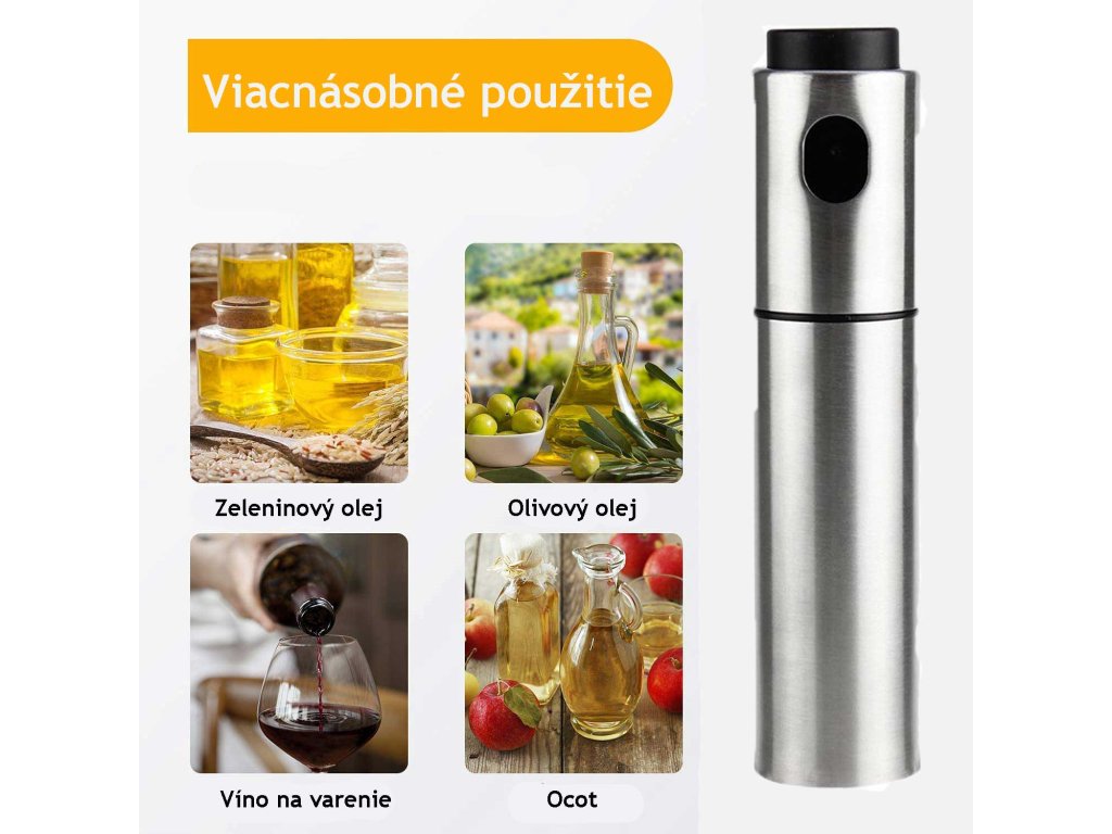 Висококачествената пулверизатор за олио е изработена от висококачествена неръждаема стомана с голям бутон, модерен дизайн и многофункционална употреба. Благодарение на пръскачката ще имате контрол върху количеството използвано масло, така че храната ви да не се напои с масло.