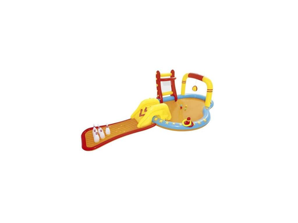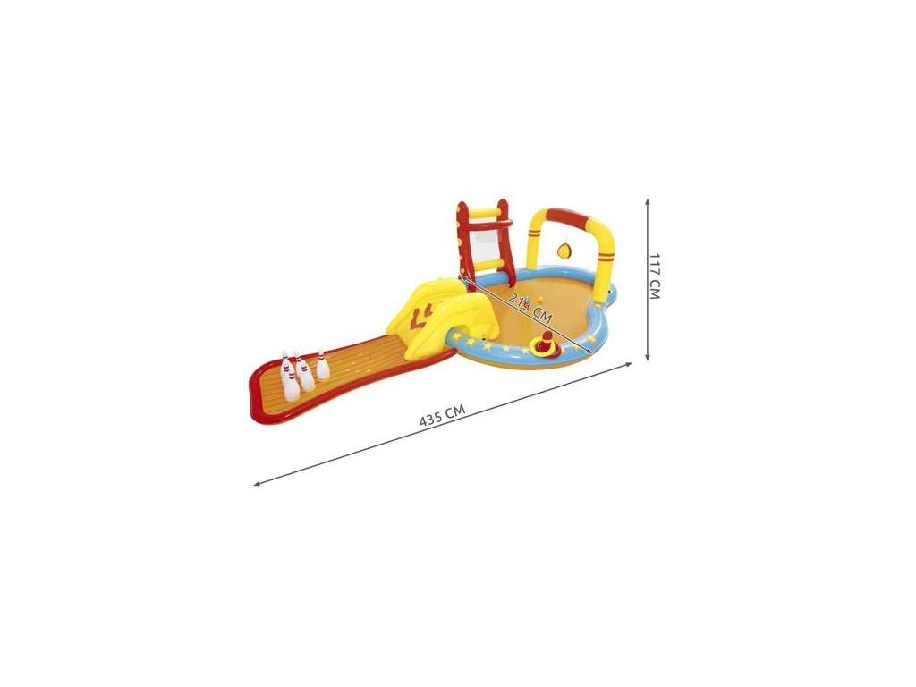 Надуваемата водна площадка предлага няколко вида игри. Вашите деца могат да опитат стрелба в кош, боулинг, дори хвърляне на обръчи. Те могат да развият двигателни умения и креативност, докато измислят нови игри и правила.