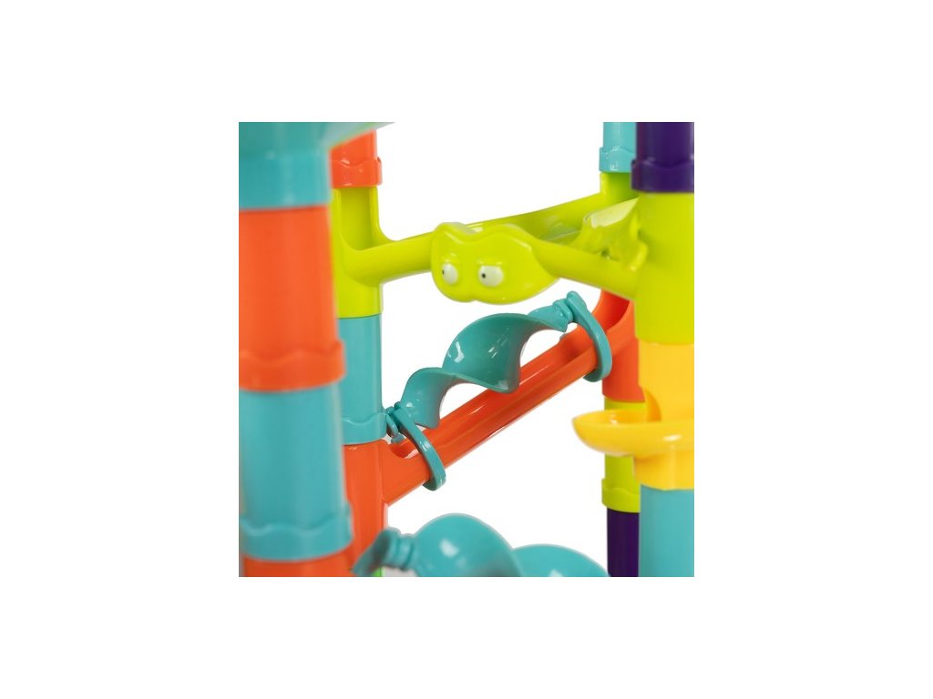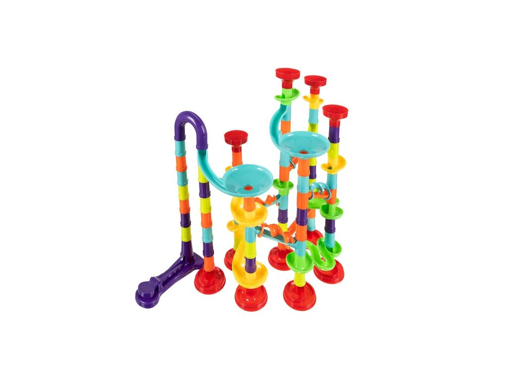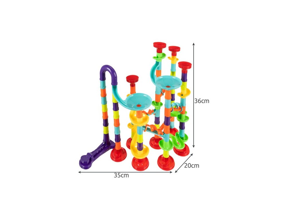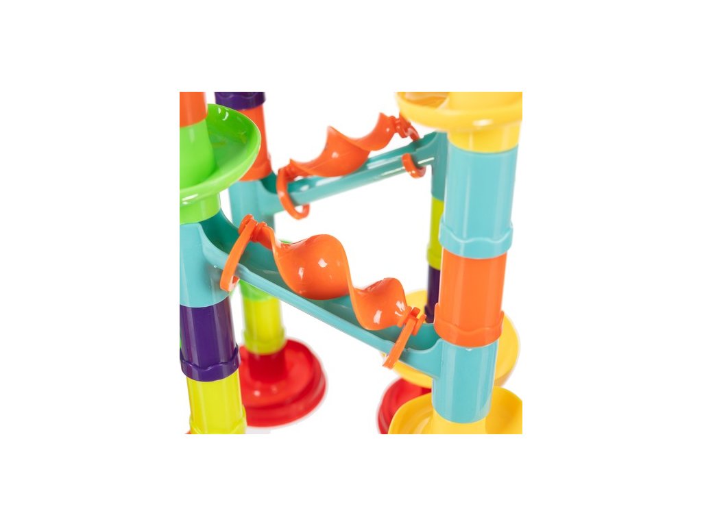Уникален творчески комплект - пистата с топка съдържа сензационни 113 цветни елемента. Вашите деца могат да създават много различни маршрути. По този начин те не само се забавляват, но и развиват своите инженерни умения. Всички елементи са просто свързани помежду си и лесно регулируеми, което позволява бързи промени в оформлението на пистата и по този начин гарантира много моменти на вълнуващо забавление.
