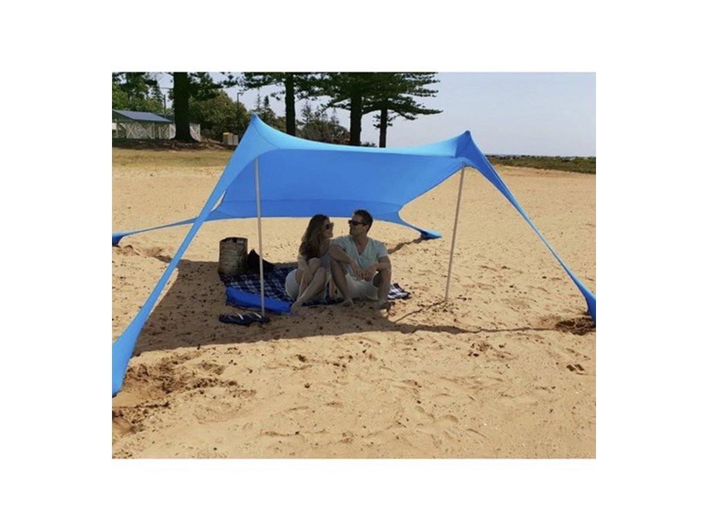 Сенникът с UV защита е идеален за почивка на плажа, дори ако времето е ветровито. Снабдена е със специални джобове, които осигуряват перфектна стабилност при напълване с пясък или друг тежък материал.