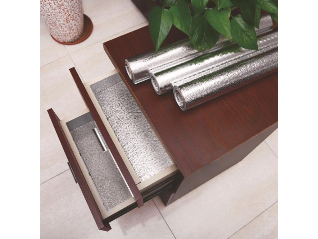 Висококачественото сребристо самозалепващо се фолио е предназначено за идеална защита на кухненски модули, електроуреди и други предмети от мазнина, замърсяване и разрушаване. С това фолио тапетираните предмети ще изглеждат луксозно и стилно.
